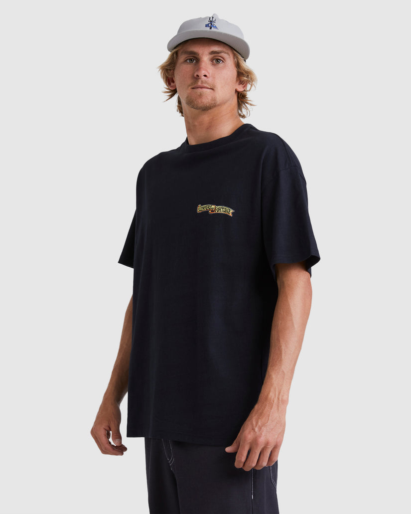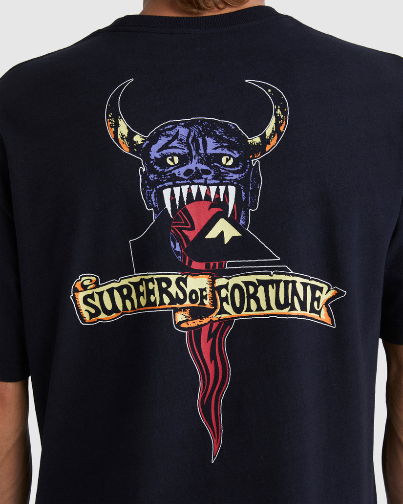 A true 90s-inspired Quiksilver t-shirt featuring original "boogieman" artwork from our archive on the left chest and back. This Surfers Of Fortune Collection tee has an oversized boxy fit made in a heavy-weight cotton and garment washed for a vintage feel.